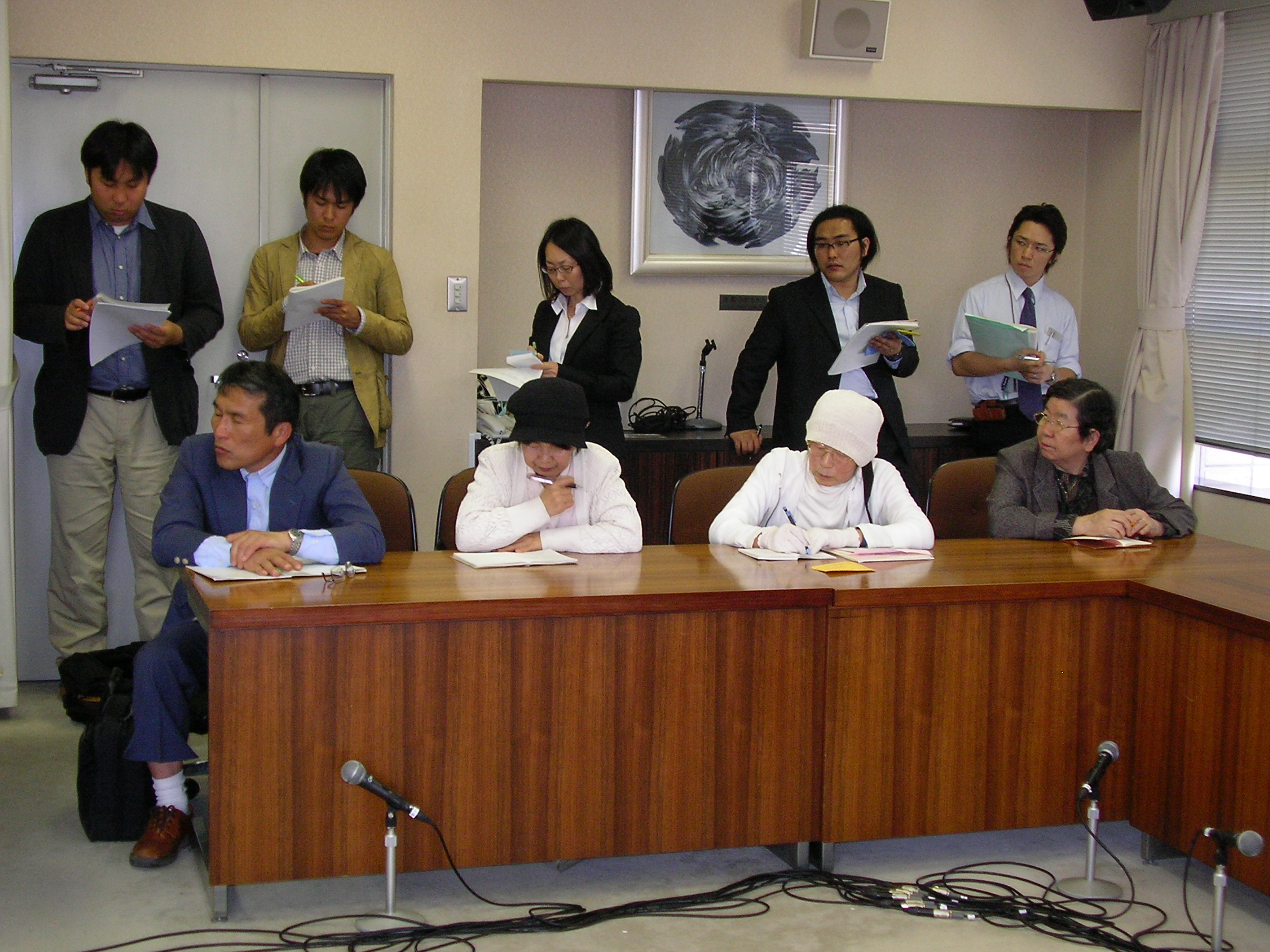 弁護士会館で行なわれた報告会に参加された皆さん。左端は前山口県議の小中進さん。